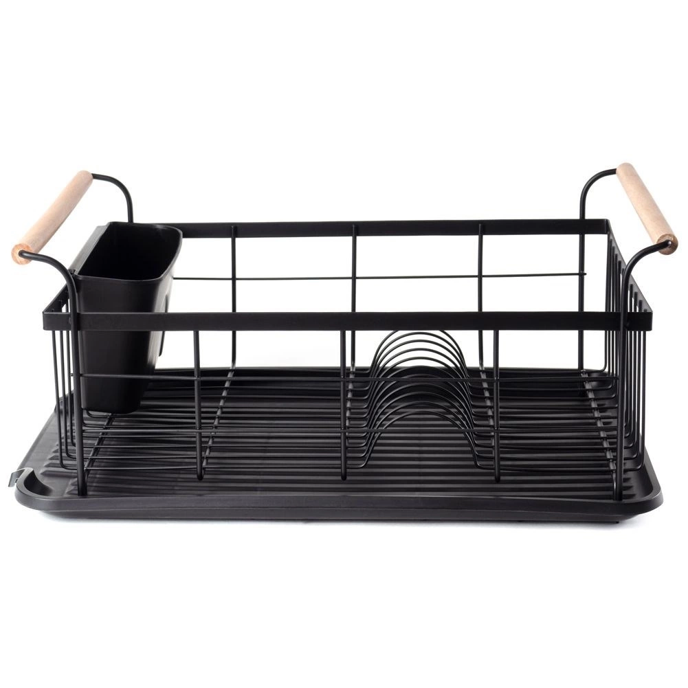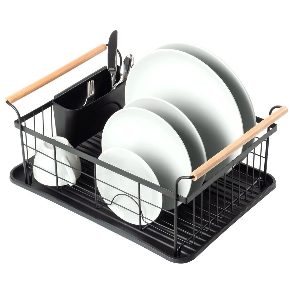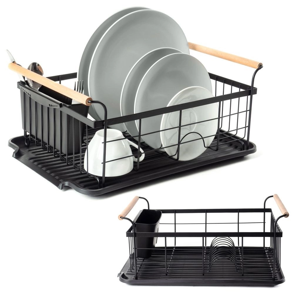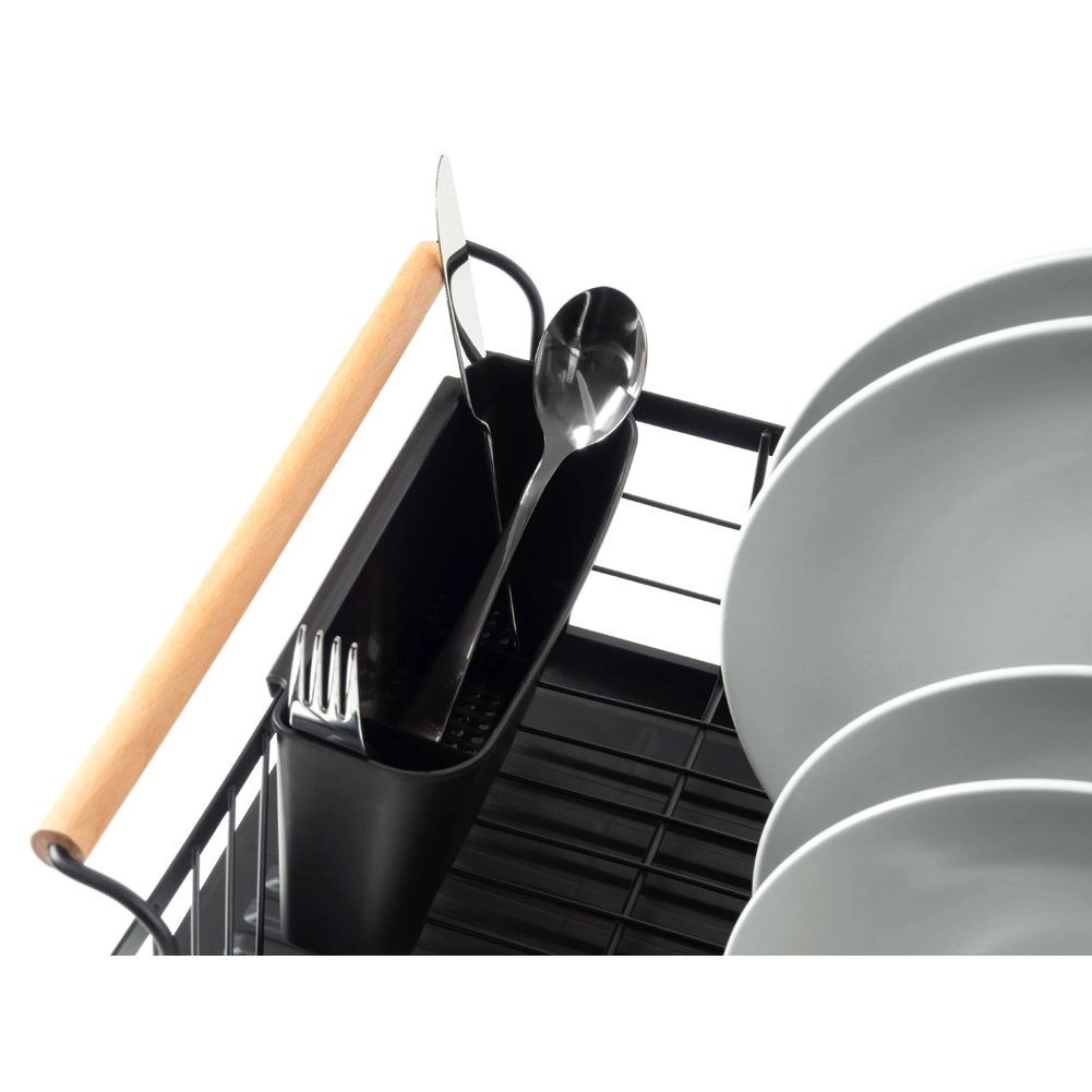 - Elegancka suszarka do naczyń w kolorze czarnym. Posiada miejsce na talerze, szklanki oraz sztućce. Wyposażona w tacę ociekową.