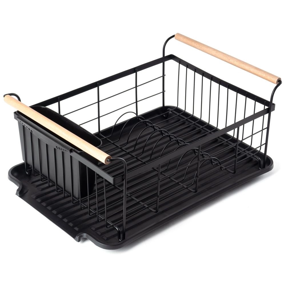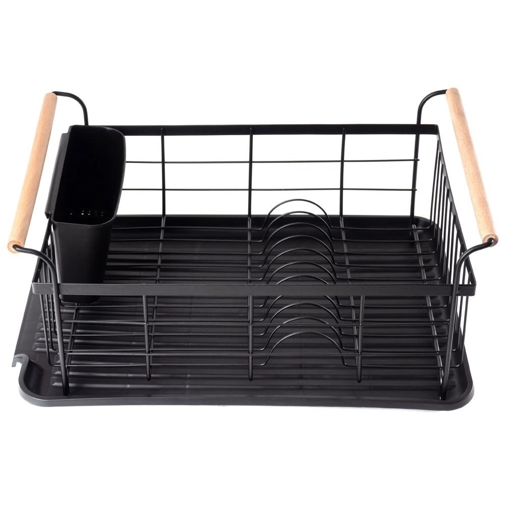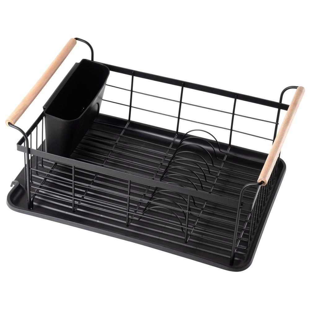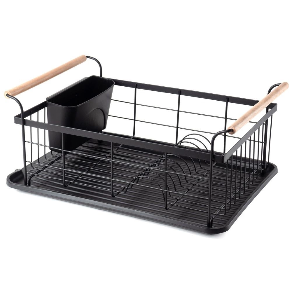- Elegancka suszarka do naczyń w kolorze czarnym. Posiada miejsce na talerze, szklanki oraz sztućce. Wyposażona w tacę ociekową.