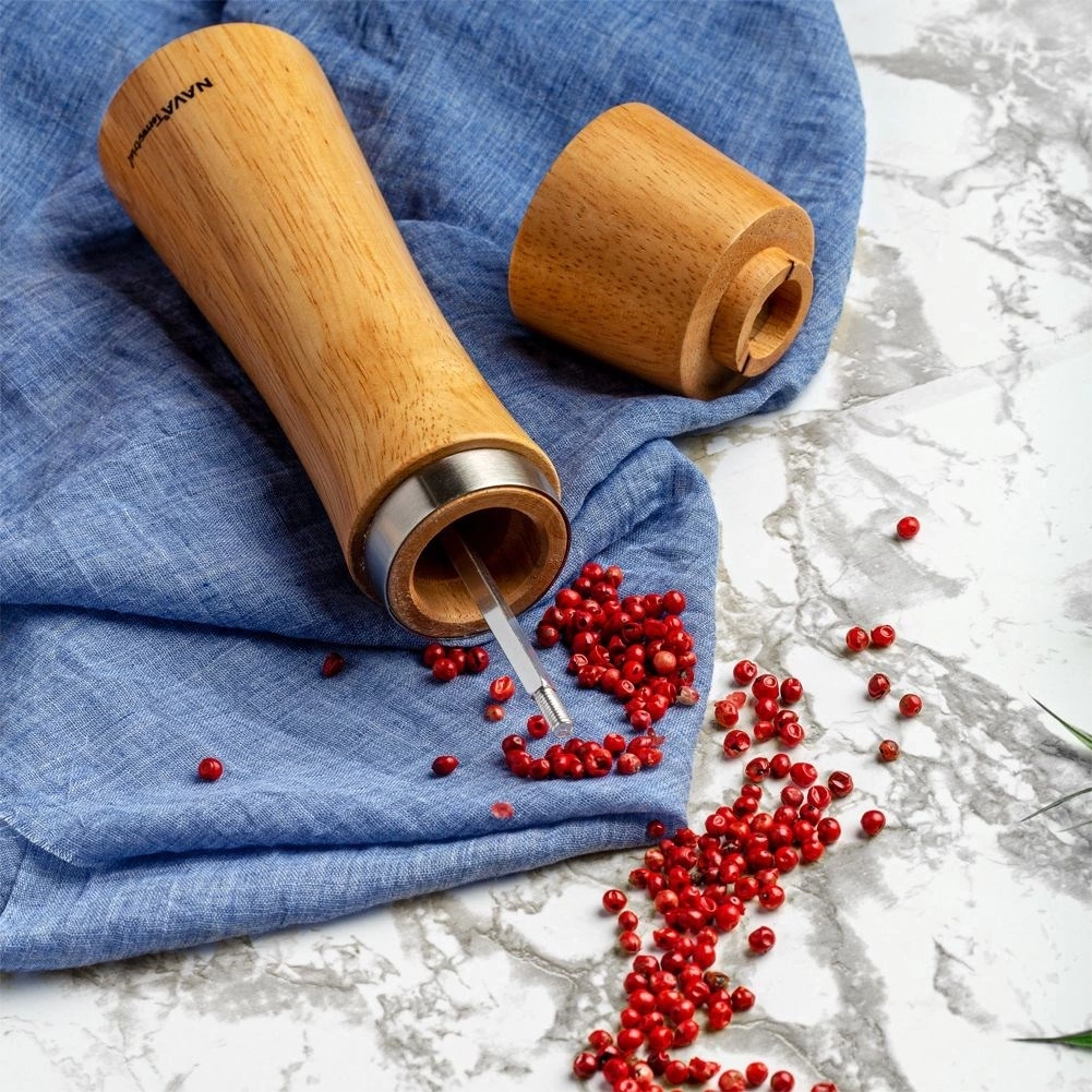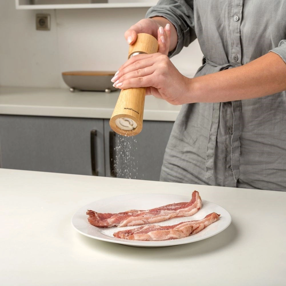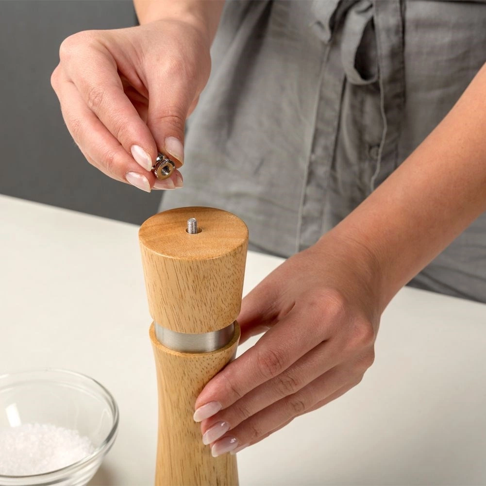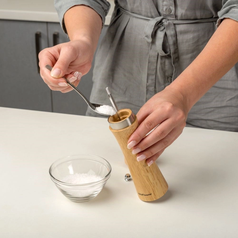 - Młynek wykonany z drewna bambusowego do mielenia ziaren pieprzu oraz soli morskiej. Posiada ceramiczne żarna mielące oraz regulację grubości mielenia.