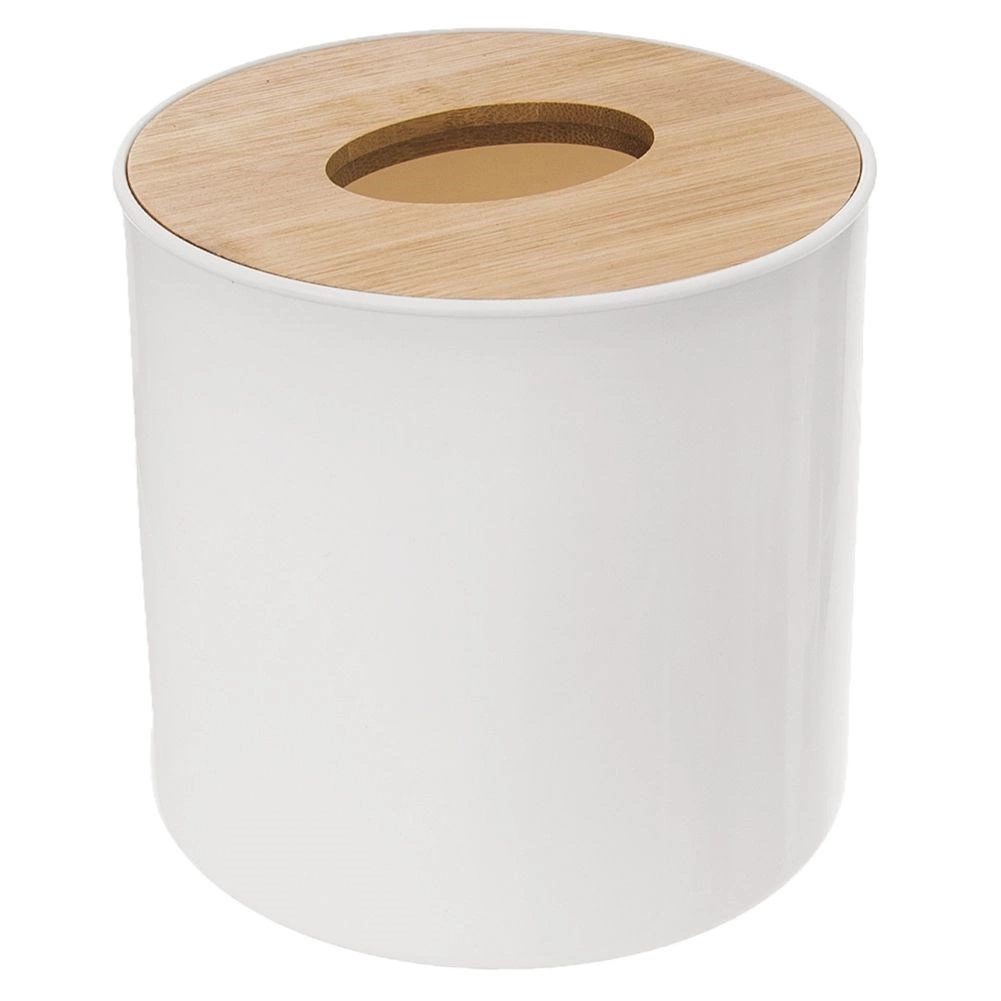 Mini kosz łazienkowy na śmieci odpady biały z bambusową pokrywką stołowy 1,5 l