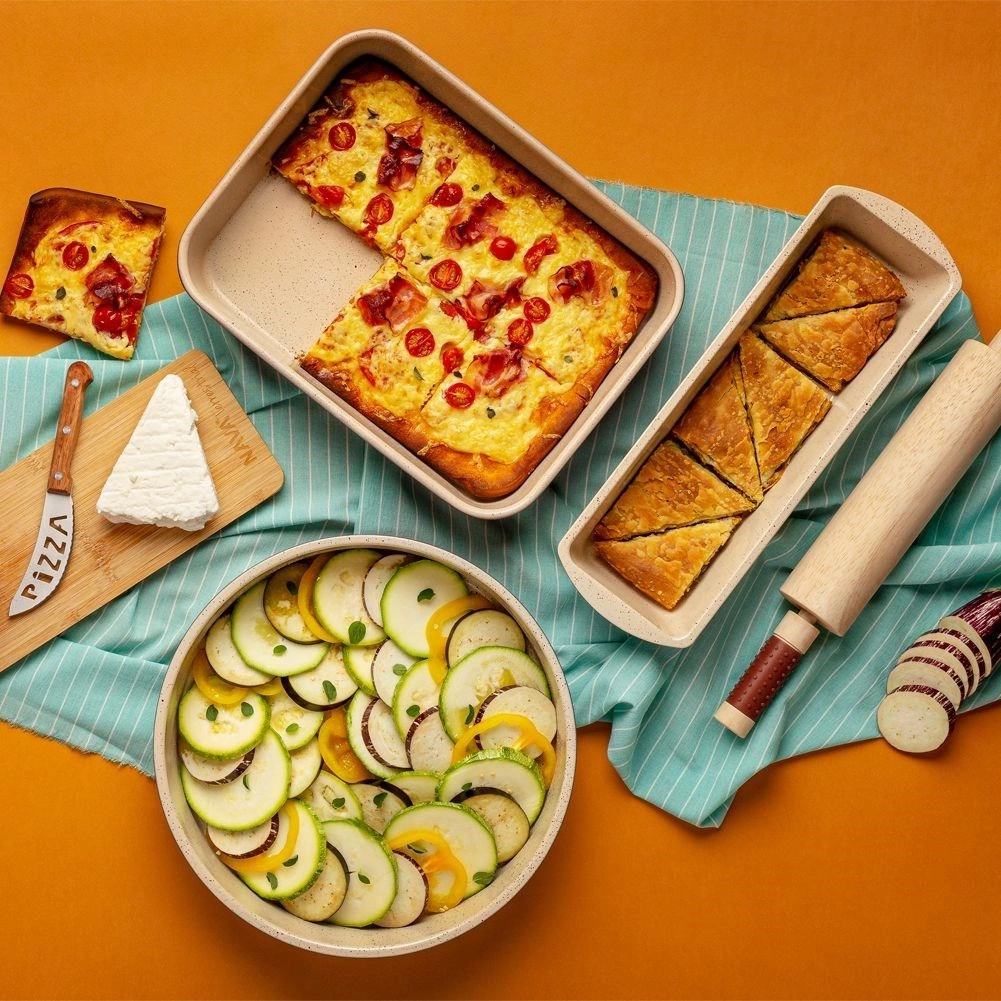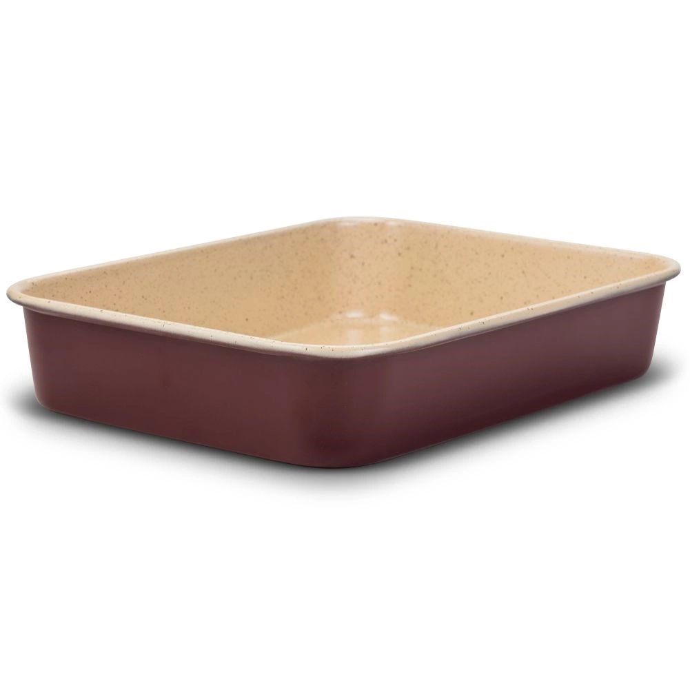 Blacha do pieczenia o długości 34 cm, szerokości 26 cm, wysokości 6,5 cm oraz pojemności 4,7 litra. Brytfanna została wykonana ze stali węglowej oraz ceramicznej powłoki granitowej. Przystosowana do użytku w piekarnikach gazowych oraz elektrycznych. Oryginalny produkt greckiej marki NAVA z linii naczyń Terrestrial. Wyprodukowano zgodnie z europejskimi standardami.