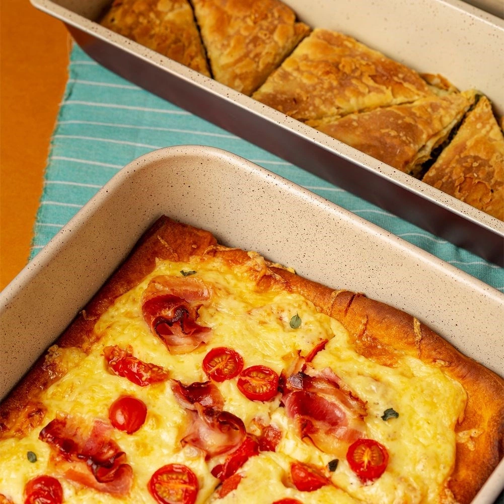 • PRAKTYCZNA - Blacha do pieczenia o długości 34 cm, szerokości 26 cm, wysokości 6,5 cm oraz pojemności 4,7 litra. Świetnie sprawdzi się do pieczenia mięs, warzyw, ciast czy domowej pizzy na grubym spodzie.
