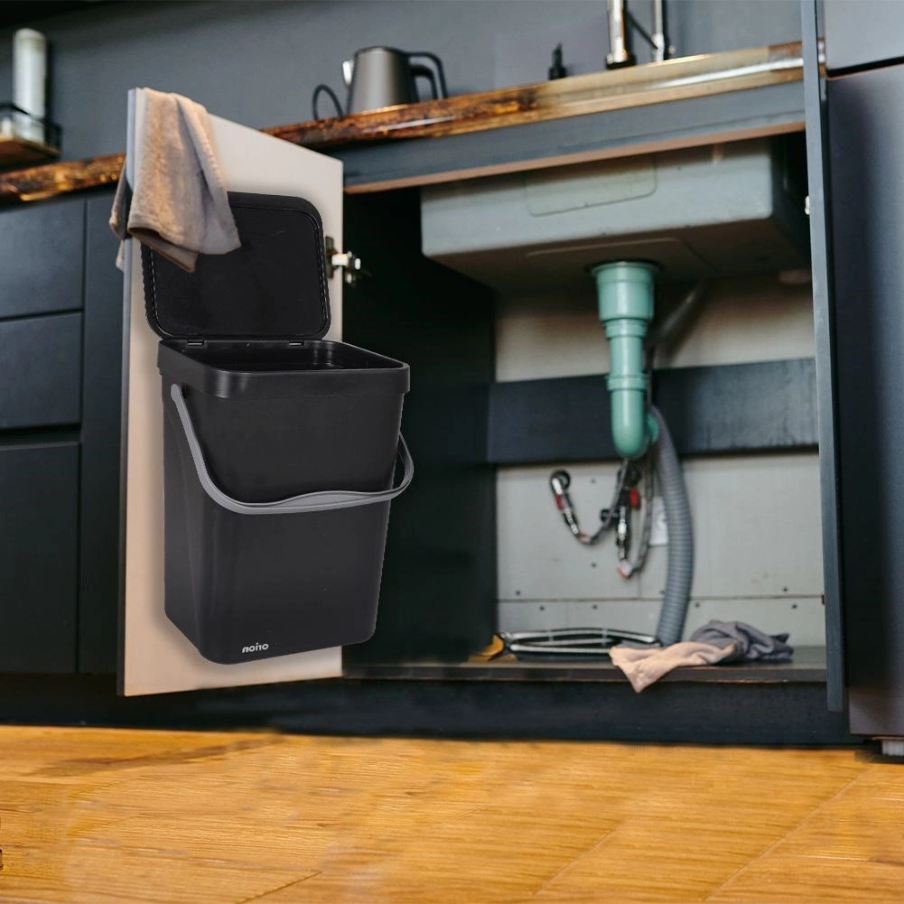 - PRAKTYCZNY - Zamykany kosz na śmieci z uchwytem do przenoszenia. Kosz ma pojemność 10 litrów i wymiary 20 x 24 x 35 cm.