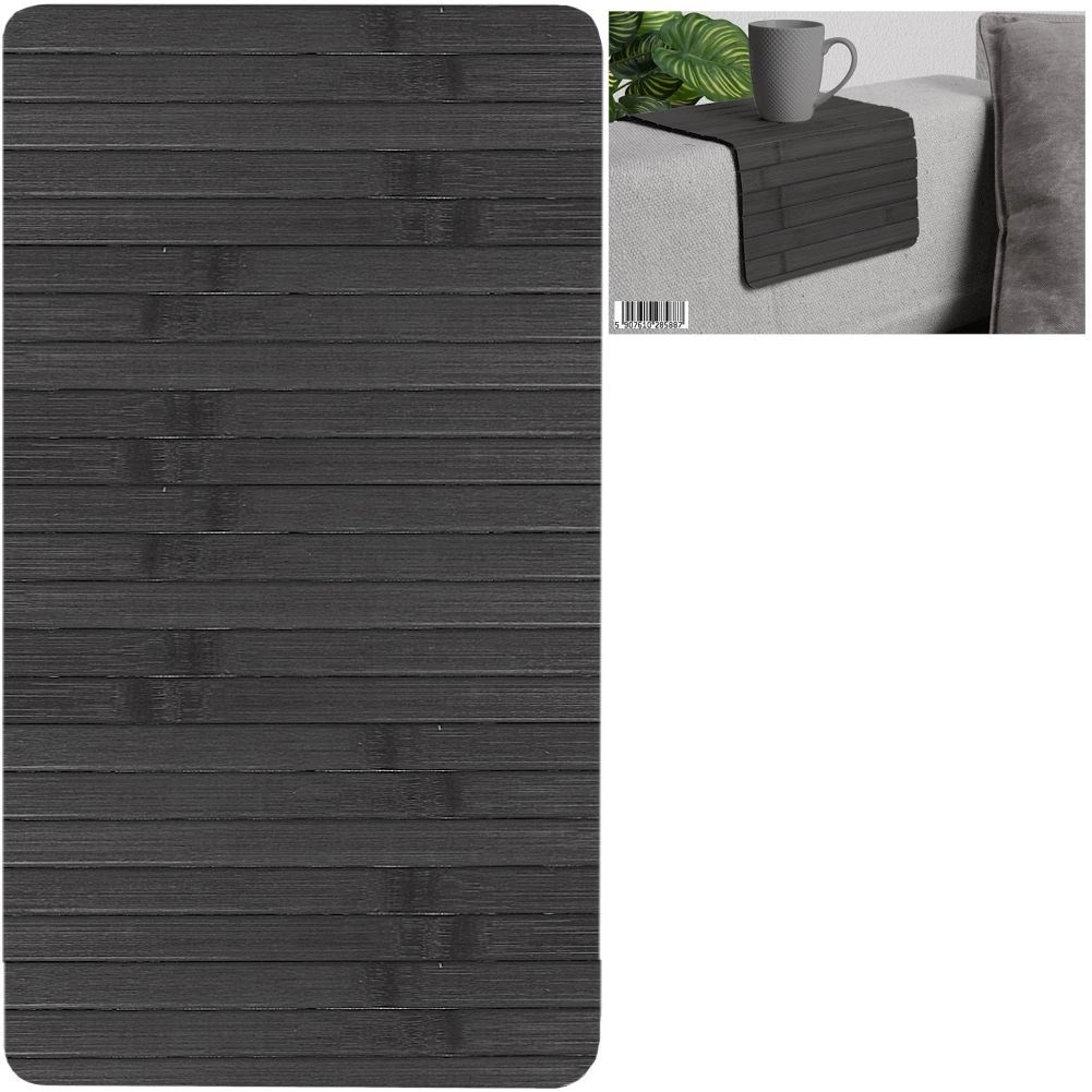 Podkładka bambusowa na stół. Pełni rolę maty zabezpieczającej przed zabrudzeniem, ale również jest dekoracyjnym tłem dla zastawy i sztućców. Mata sprawdzi się również użyta w salonie na oparciu kanapy lub fotela, co pozwoli nam na wygodne przechowywanie np. kubków z napojami. Mata posiada modny, czarny kolor. Po zwinięciu zajmuje mało miejsca, bez problemu zmieści się w szufladzie, więc przechowywanie jej jest bardzo wygodne. Wyprodukowano zgodnie z europejskimi standardami.