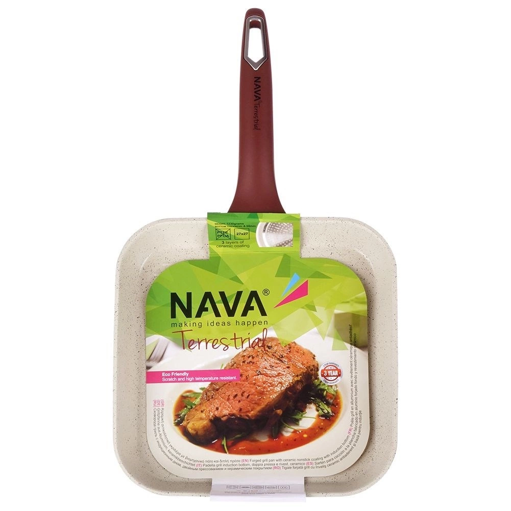 Nieprzywierająca patelnia o wyjątkowym, ponadczasowym wyglądzie. Patelnia sprawdzi się do grillowania różnego rodzaju mięs, ryb, warzyw oraz serów. Oryginalny produkt greckiej marki NAVA z linii naczyń Terrestrial. Wyprodukowano zgodnie z europejskimi standardami.