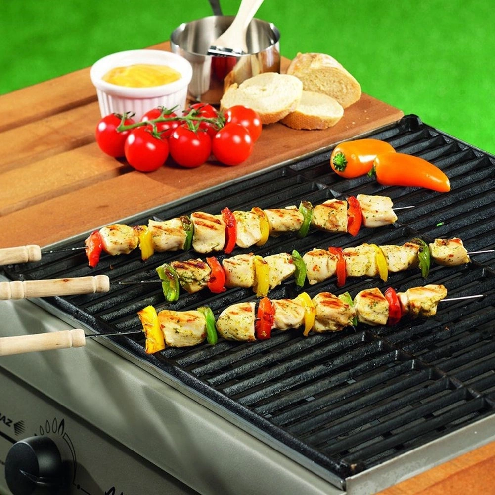 - Zestaw stalowych szpikulców do przygotowywania szaszłyków z warzyw i mięsa. Niezastąpione podczas grillowania i pieczenia w piekarniku.