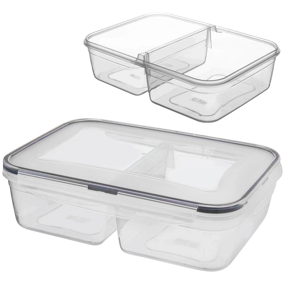 - Dzielony na 2 części pojemnik na żywność z uszczelką i zatrzaskami do zamknięcia. Idealny do pracy, szkoły na piknik. Świetnie sprawdzi się jako lunchbox.