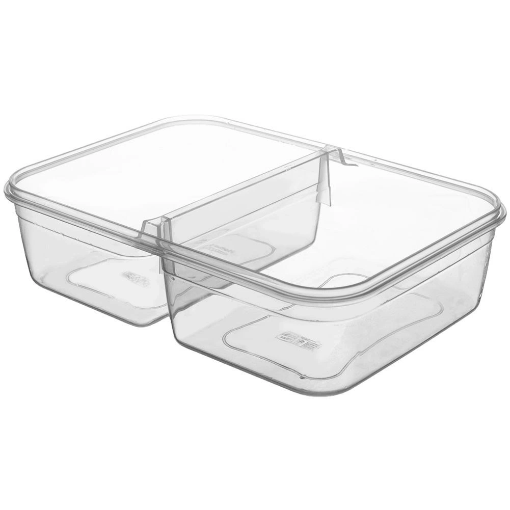 Pojemnik na żywność o pojemności 2 litrów. Pojemnik o wymiarach 25,5 x 18 x 7 cm. Wykonany z najwyższej jakości tworzywa. Świetnie sprawdzi się jako lunch box, dzięki dwóm wydzielonym częściom do przechowywania. Możliwość spiętrzania takich samych pojemników. Niezwykle szczelny dzięki silikonowej uszczelce oraz czterem zatrzaskom. Niezbędny w każdej kuchni. Nadaje się do lodówki, zamrażarki (do -25°C), mikrofalówki (do +95°C). Wykonany z materiałów bezpiecznych dla zdrowia i neutralnych dla żywności - nie posiada BPA. Oryginalny produkt czeskiej marki Orion. Wyprodukowano zgodnie z europejskimi standardami.