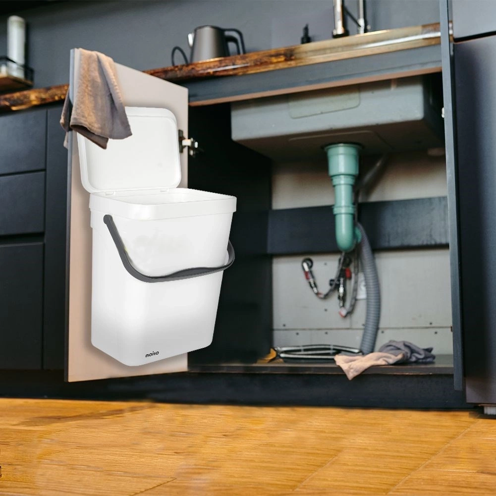 Kosz na śmieci odpady zawieszany na drzwi drzwiczki do szafki zawieszenia biały 10 l