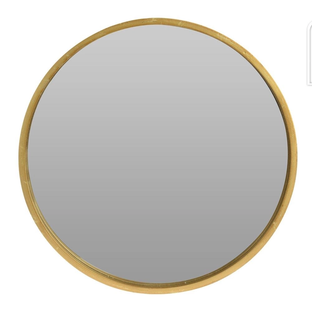 - Tafla lustra umieszczona w drewnianej ramie w kolorze złotym.