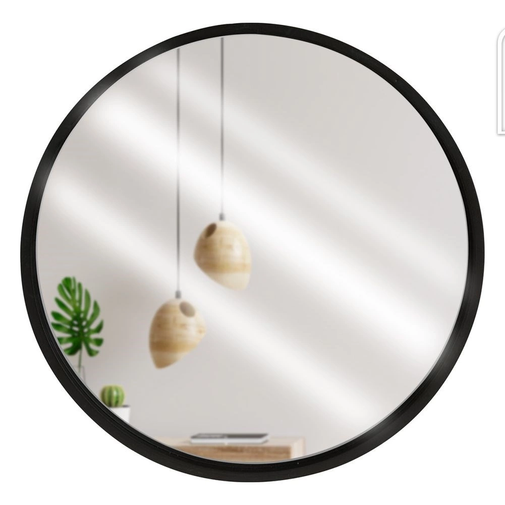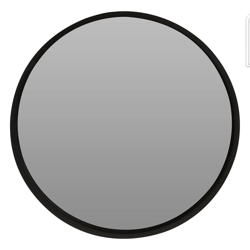 - Tafla lustra umieszczona w drewnianej ramie w kolorze czarnym.