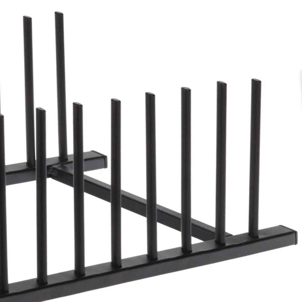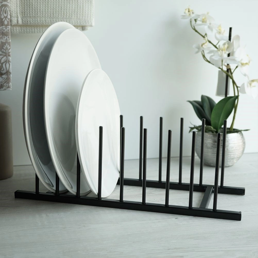 - Organizer na talerze i pokrywki. Wykonany z metalu w kolorze czarnym. Pomieści 8 talerzy lub pokrywek. Utrzymany w stylu loft. Pomoże utrzymać porządek w kuchni.