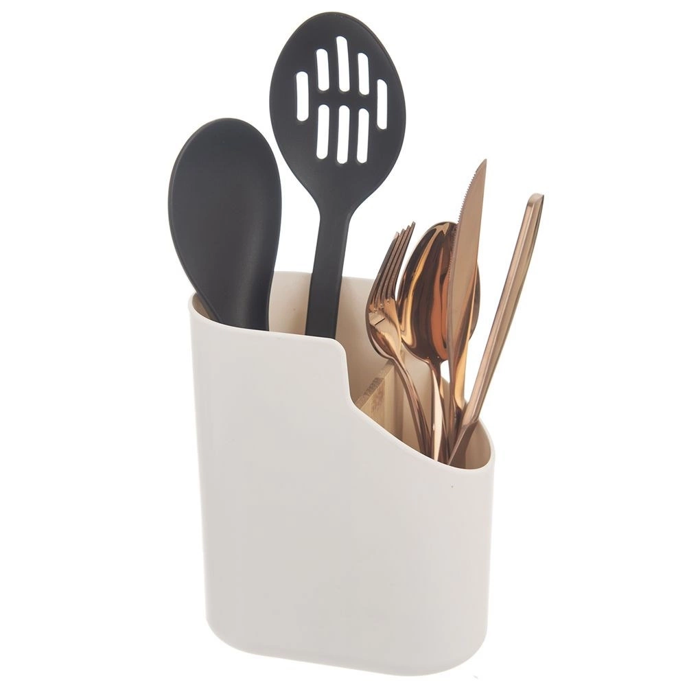 - Pojemnik wykonany z wysokiej jakości tworzywa w kolorze beżowym. Świetnie sprawdzi się do ociekania oraz przechowywania sztućców. Posiada dwie przegródki.