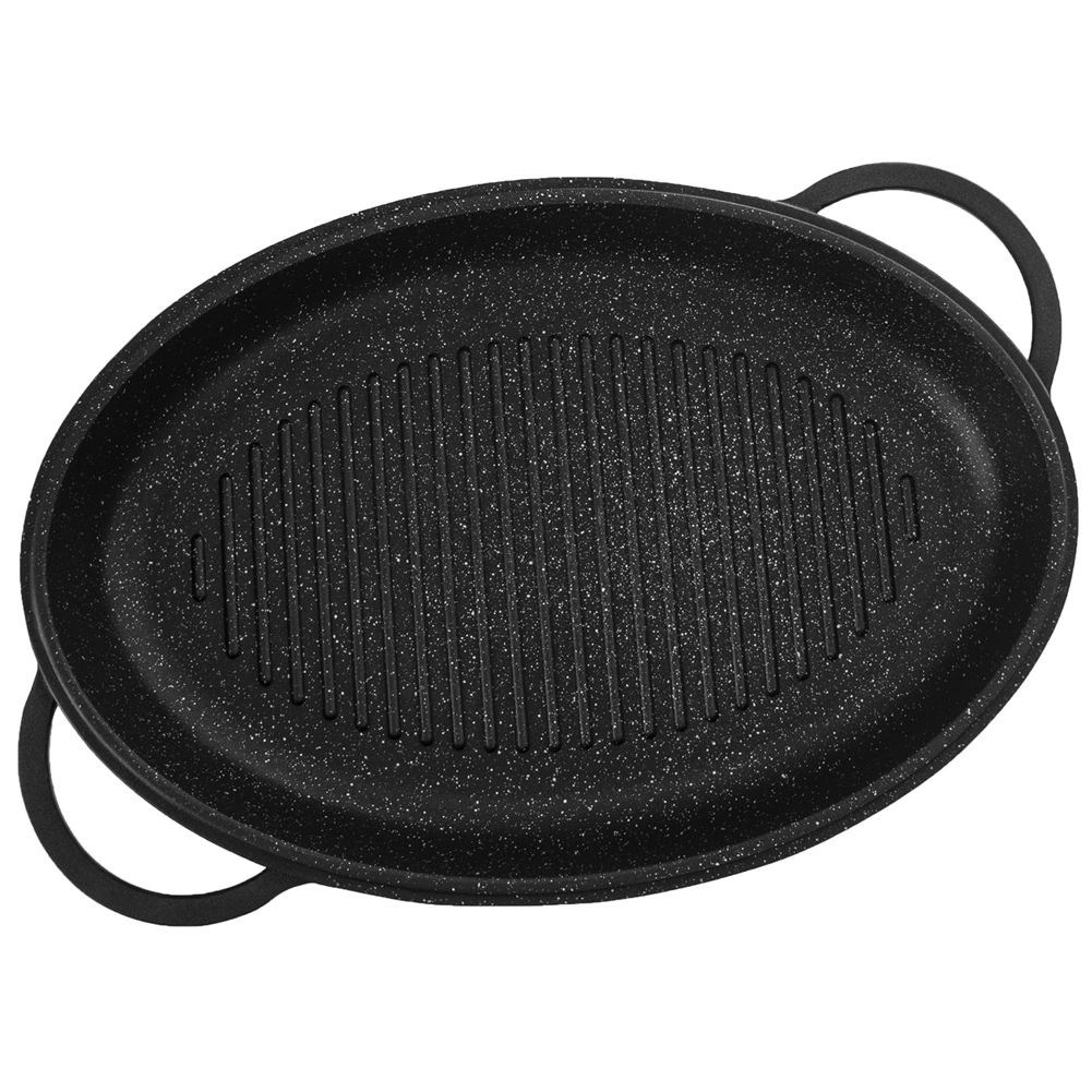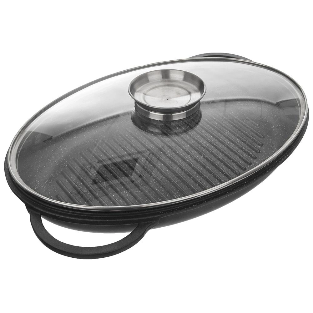Patelnia grillowa z pokrywką głęboka brytfanna granitowa GRANDE AROMA 43x28x6 cm