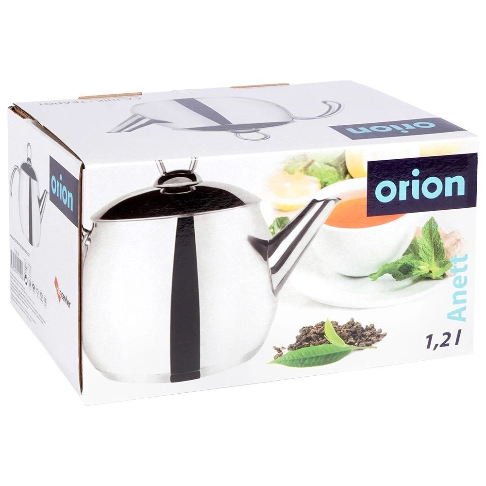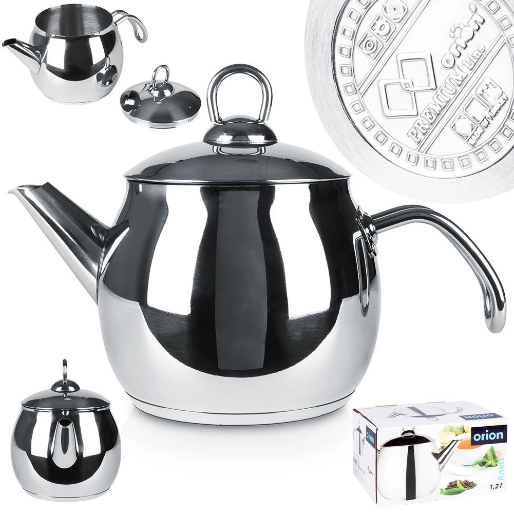 Czajnik wykonany ze stali nierdzewnej o pojemności całkowitej 1,2 litra i pojemności użytkowej 900 ml. Niezwykle elegancki i praktyczny. Można wykorzystać go zarówno do gotowania wody, jak również może pełnić funkcję dzbanka w którym serwujemy napoje. Dzięki możliwości użytkowania na kuchenkach w łatwy sposób podgrzejemy również przygotowany w nim napój np. herbatę. Posiada wygodny uchwyt, który ułatwi przenoszenie oraz zdejmowaną pokrywkę ułatwiającą nalewanie wody. Oryginalny produkt czeskiej marki Orion. Wyprodukowano zgodnie z europejskimi standardami.