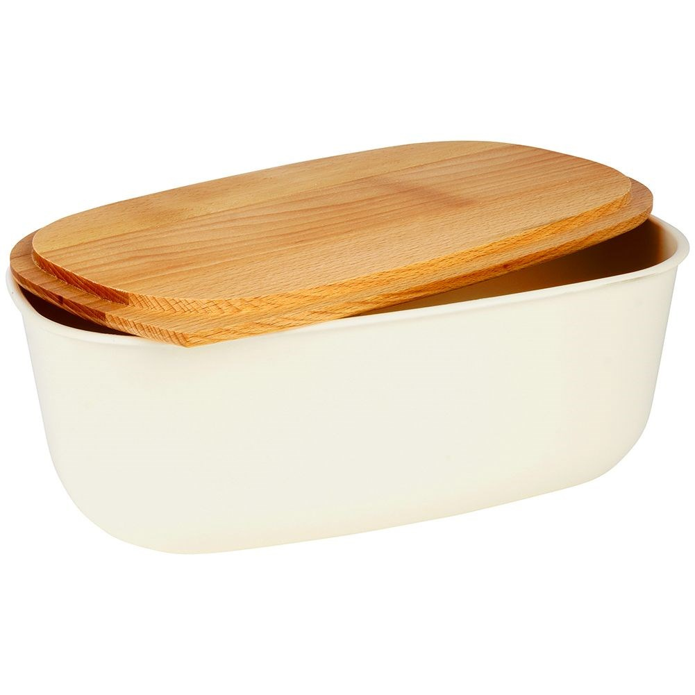 Chlebak pojemnik na pieczywo z drewnianą deską kremowy 39x23,5x15,5 cm
