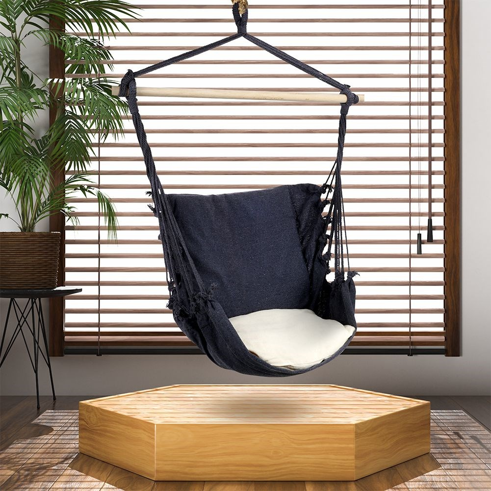 Hamak brazylijski fotel podwieszany grafitowy poducha beżowa