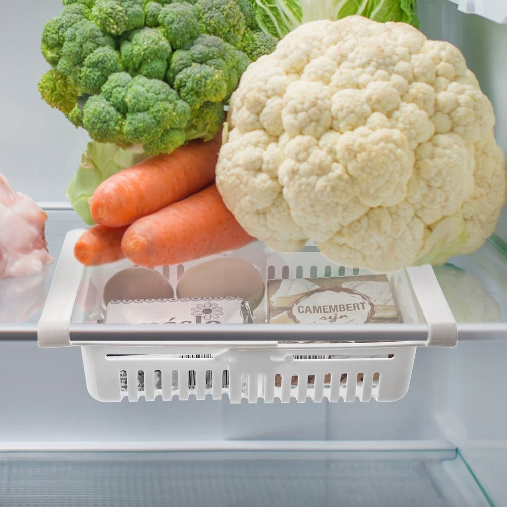 - Organizer w postaci podwieszanej półeczki do lodówki. Posiada rozsuwaną długość, więc możemy go odpowiednio dostosować do przechowywanych produktów.