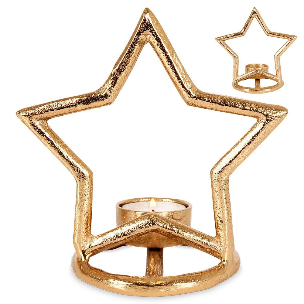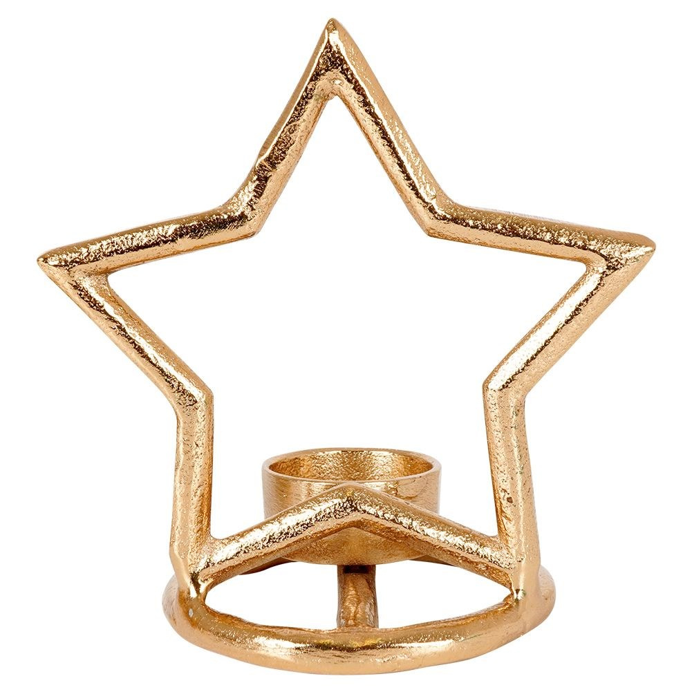 - Świecznik w kształcie gwiazdy na świeczkę typu teliaght. Wykonany z aluminium w kolorze złotym. Niezwykle elegancki i minimalistyczny. Będzie wyjątkową ozdobą.