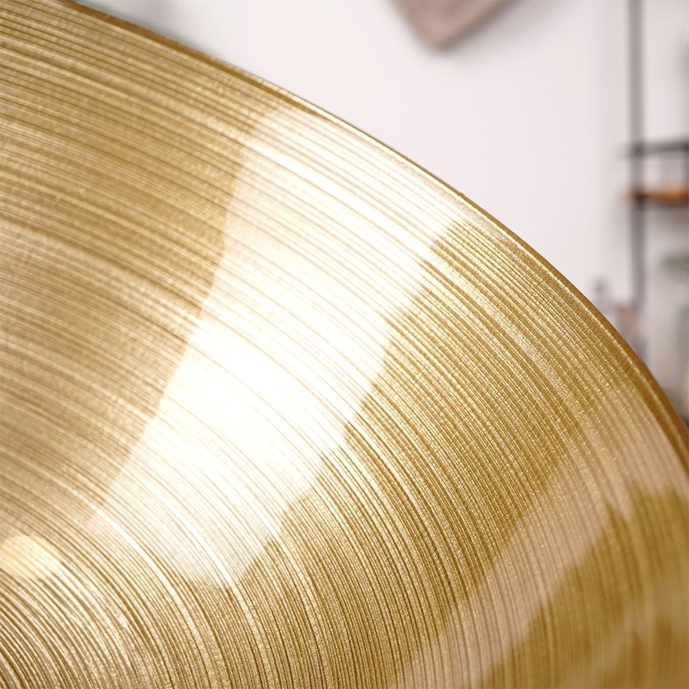 - SZKLANA - Miska wykonana ze szkła malowanego na złoty kolor. Zewnętrzna część miski jest matowa i ma strukturę delikatnych, poziomych prążków, które tworzą efektowną całość.