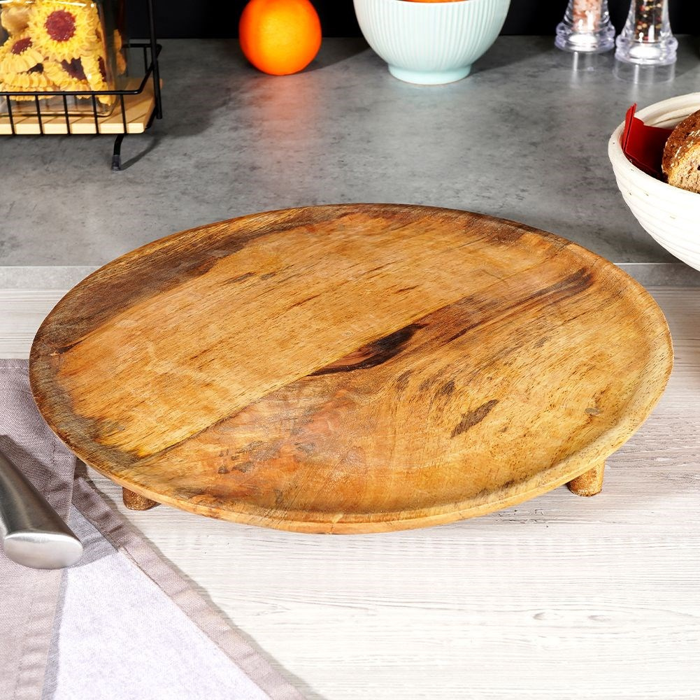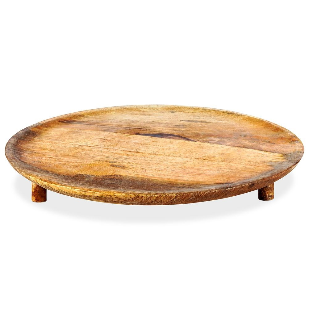 - Okrągła deska do krojenia i serwowania. Wykonana z egzotycznego drewna mangowca. Świetnie prezentuje się na stole, konstrukcja na podwyższeniu ułatwia zgarnianie produktów.