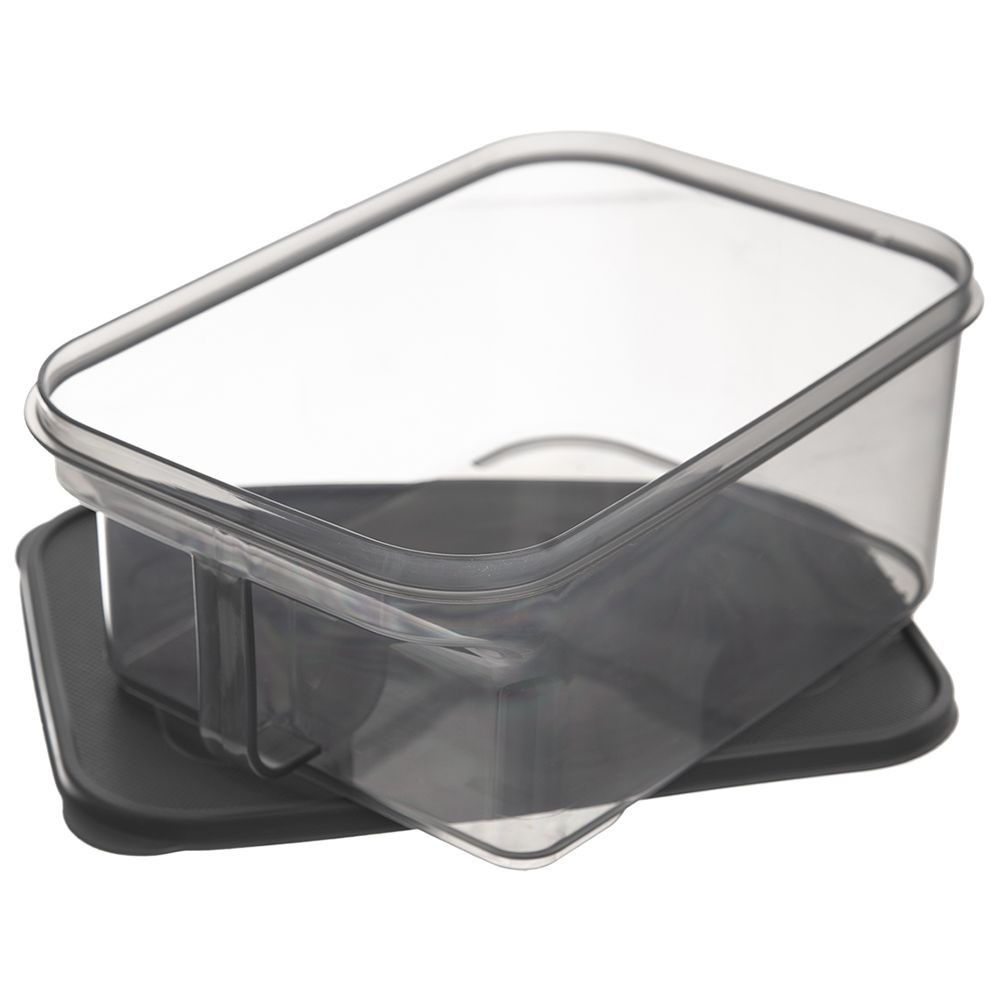 Pojemnik o wymiarach 23 x 16 x 10 cm i pojemności 2,6 litra. Dzięki zamknięciu świetnie sprawdzi się do przechowywania produktów sypkich. Wykonany z najwyższej jakości tworzywa w kolorze szarym, dzięki przezroczystej formie w łatwy sposób zobaczymy zawartość pojemnika bez konieczności otwierania go. Niezwykle wygodny i poręczny w użytkowaniu. Wyposażony w szczelną pokrywkę. Posiada wygodny uchwyt, który ułatwi przenoszenie oraz wyjmowanie z szafki. Przy zakupie większej ilości pojemników, jest możliwość spiętrzania ich jeden na drugim. Można stosować w mikrofalówce oraz chłodziarce i zamrażarce. Łatwy w czyszczeniu dzięki możliwości mycia w zmywarce do naczyń. Oryginalny produkt czeskiej marki Orion. Wyprodukowano zgodnie z europejskimi standardami.