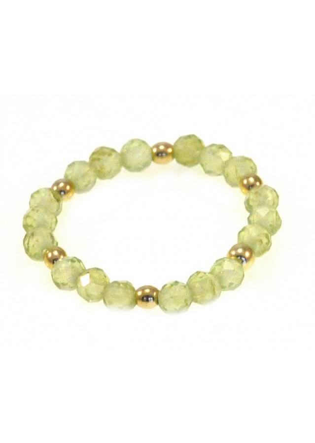 Kamień:  Hematyt + Oliwin+ srebrny element, pozłacane 24 karatowym żółtym złotem Pierścionek wykonany na bardzo wytrzymałej gumce, odpornej na uszkodzenia.  Rozmiar kamienia: 2/3 mm Rozmiar uniwersalny. Produkt wykonywany ręcznie