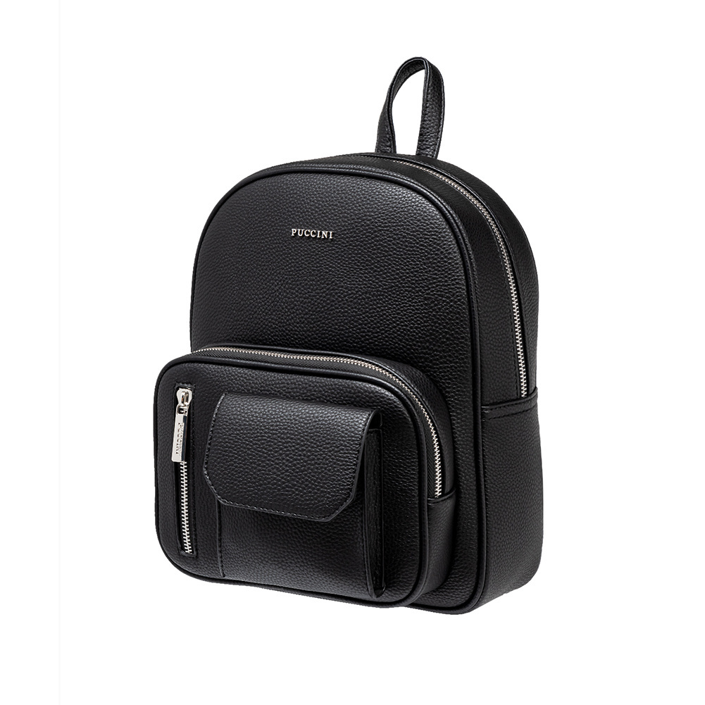 - na froncie trzy kieszenie, dwie zamykane na suwak i jedna zamykana klapą z metalowym zatrzaskiem