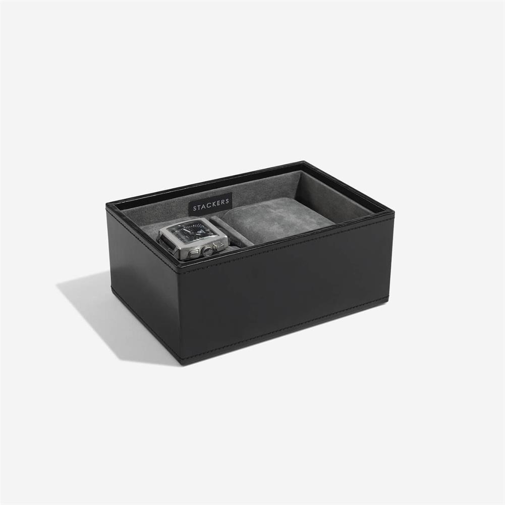 Marka Stackers specjalizuje się w niezwykle eleganckich i praktycznych szkatułkach oraz pudełkach na biżuterię damską i akcesoria męskie. W ofercie znajdują się wykonane z największą dokładnością pudełka oraz etui (również podróżne) do przechowywania biżuterii, zegarków, okularów czy spinek do mankietów. Ogromną zaletą organizerów jest ich modułowość - w zależności od potrzeby możemy dołożyć kolejne piętra lub szufladki, pokrywki oraz wkładki, aby zyskać dodatkową przestrzeń na akcesoria.