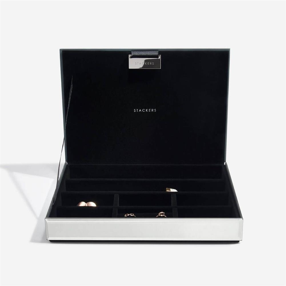 Marka Stackers specjalizuje się w niezwykle eleganckich i praktycznych szkatułkach oraz pudełkach na biżuterię damską i akcesoria męskie. W ofercie znajdują się wykonane z największą dokładnością pudełka oraz etui (również podróżne) do przechowywania biżuterii, zegarków, okularów czy spinek do mankietów. Ogromną zaletą organizerów jest ich modułowość - w zależności od potrzeby możemy dołożyć kolejne piętra lub szufladki, pokrywki oraz wkładki, aby zyskać dodatkową przestrzeń na akcesoria.