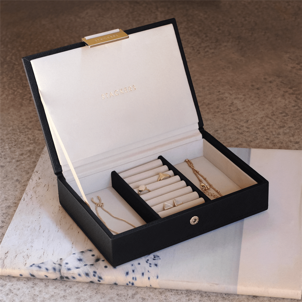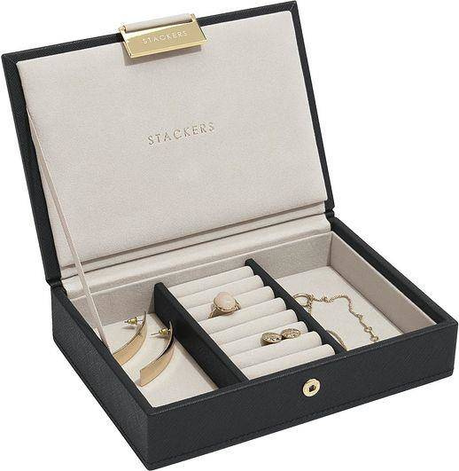 Szkatułka na biżuterię Stackers mini czarna velvet z pokrywką