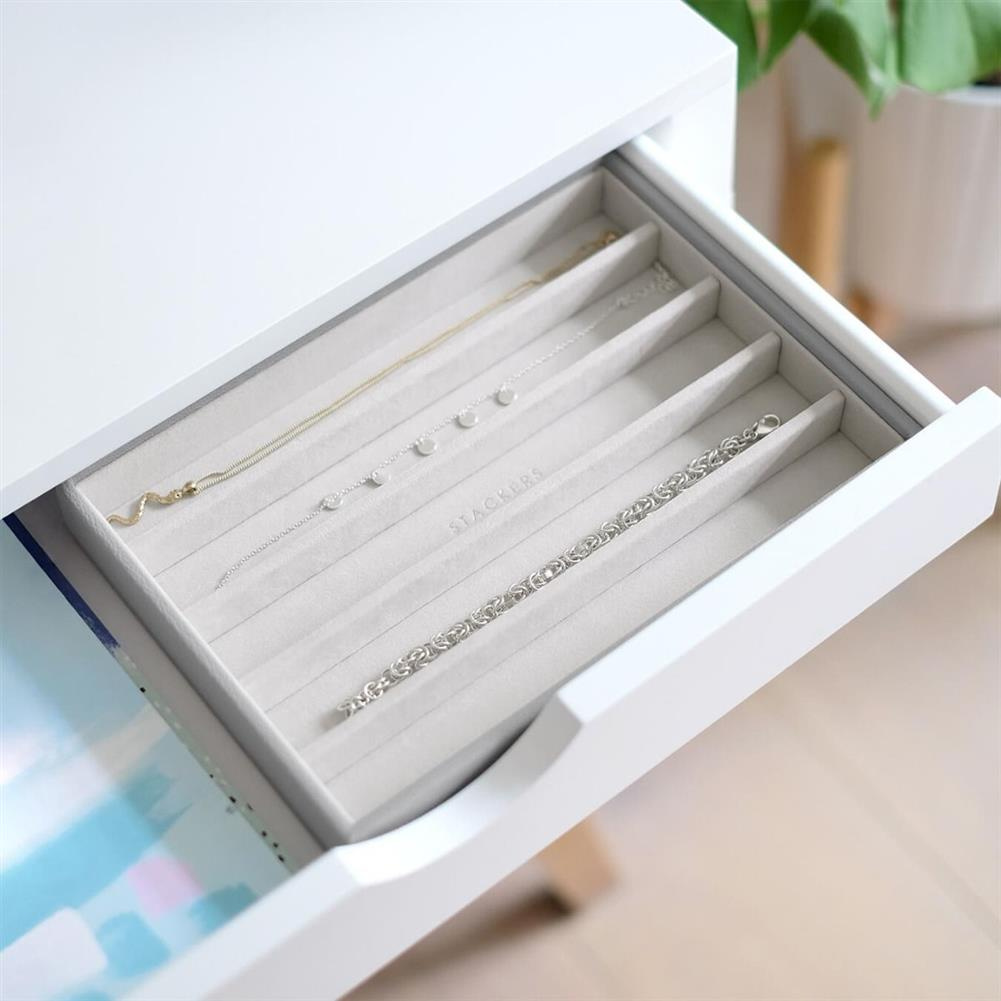 Marka Stackers specjalizuje się w niezwykle eleganckich i praktycznych szkatułkach oraz pudełkach na biżuterię damską i akcesoria męskie. W ofercie znajdują się wykonane z największą dokładnością pudełka oraz etui (również podróżne) do przechowywania biżuterii, zegarków, okularów czy spinek do mankietów. Ogromną zaletą organizerów jest ich modułowość - w zależności od potrzeby możemy dołożyć kolejne piętra lub szufladki, pokrywki oraz wkładki, aby zyskać dodatkową przestrzeń na akcesoria.
