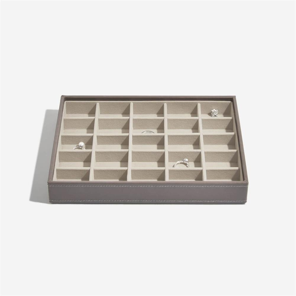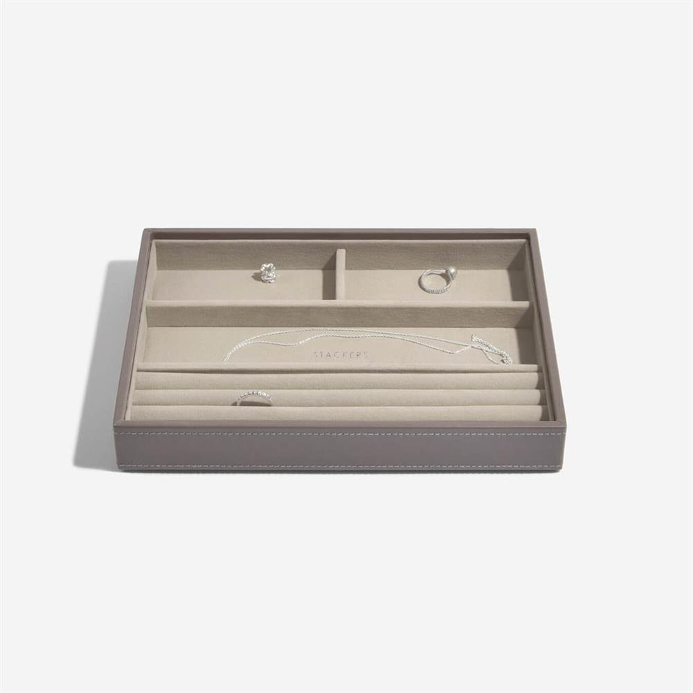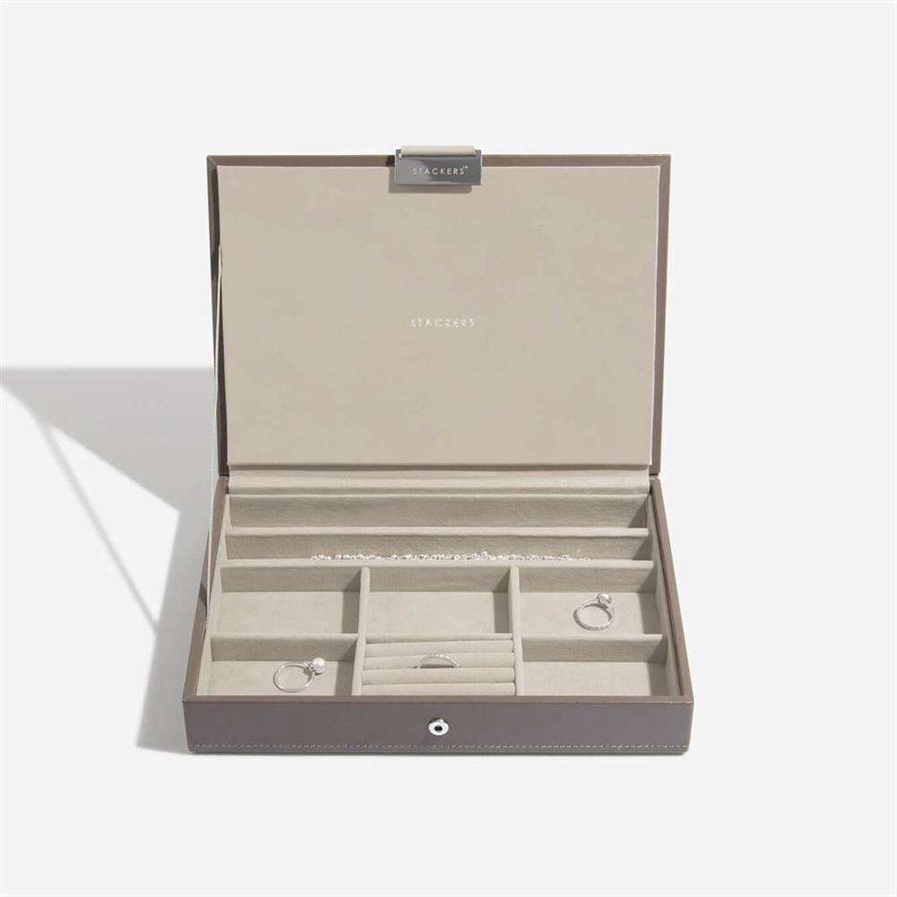 Marka Stackers specjalizuje się w niezwykle eleganckich i praktycznych szkatułkach oraz pudełkach na biżuterię damską i akcesoria męskie. W ofercie znajdują się wykonane z największą dokładnością pudełka oraz etui (również podróżne) do przechowywania biżuterii, zegarków, okularów czy spinek do mankietów. Ogromną zaletą organizerów jest ich modułowość - w zależności od potrzeby możemy dołożyć kolejne piętra lub szufladki, pokrywki oraz wkładki, aby zyskać dodatkową przestrzeń na akcesoria.