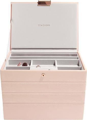 Pudełka na biżuterię Stackers zostały zaprojektowane tak, aby możliwe było stworzenie swojej własnej kombinacji, wybierając warstwy i akcesoria najlepiej pasujące do kolekcji. Pudełko na biżuterię może być również idealnym rozwiązaniem do przechowywania biżuterii w szufladzie, jeśli chcesz zachować porządek na toaletce. Szkatułka to najładniejszy sposób, aby pięknie wyeksponować większe elementy, bez uszczerbku dla organizacji.