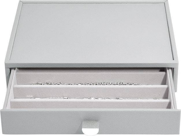 Marka Stackers specjalizuje się w niezwykle eleganckich i praktycznych szkatułkach oraz pudełkach na biżuterię damską i akcesoria męskie. W ofercie znajdują się wykonane z największą dokładnością pudełka oraz etui (również podróżne) do przechowywania biżuterii, zegarków, okularów czy spinek do mankietów. Ogromną zaletą organizerów jest ich modułowość - w zależności od potrzeby możemy dołożyć kolejne piętra lub szufladki, pokrywki oraz wkładki, aby zyskać dodatkową przestrzeń na akcesoria.