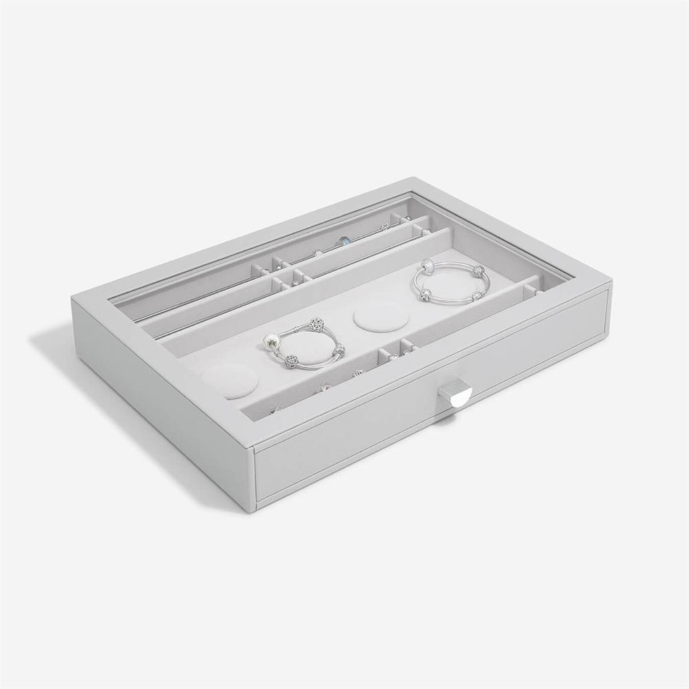 Szkatułka na charmsy Stackers Pebble supersize kamienna szarość z szufladą i szklaną pokrywką