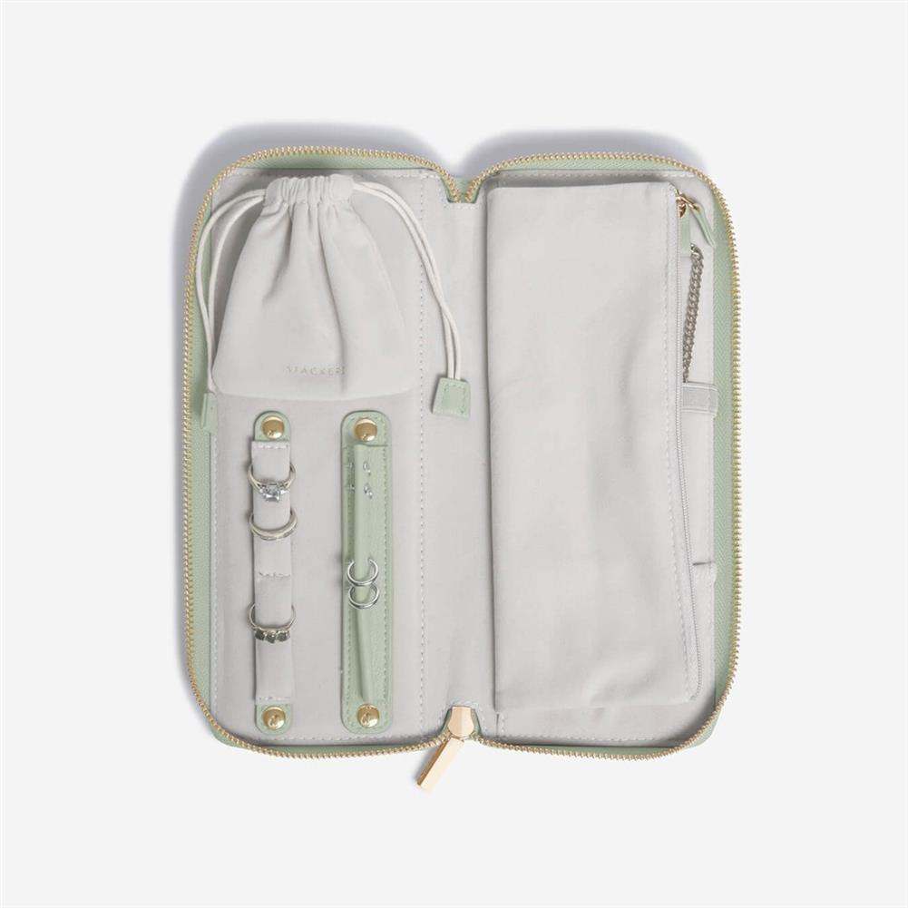 Pudełko podróżne na biżuterię z miejscem na pierścionki Stackers zieleń szałwiowa