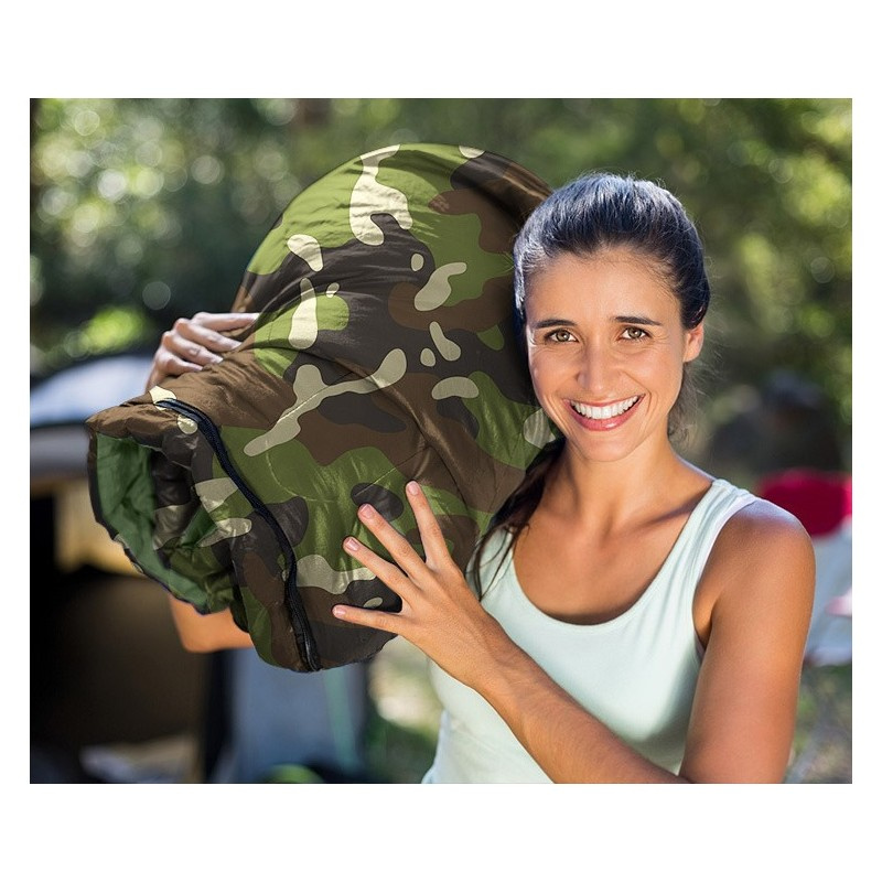 Śpiwór ma idealny kształt MUMII - szeroki przy głowie (specjalny kształt jak kaptur) i węższy w nogach.