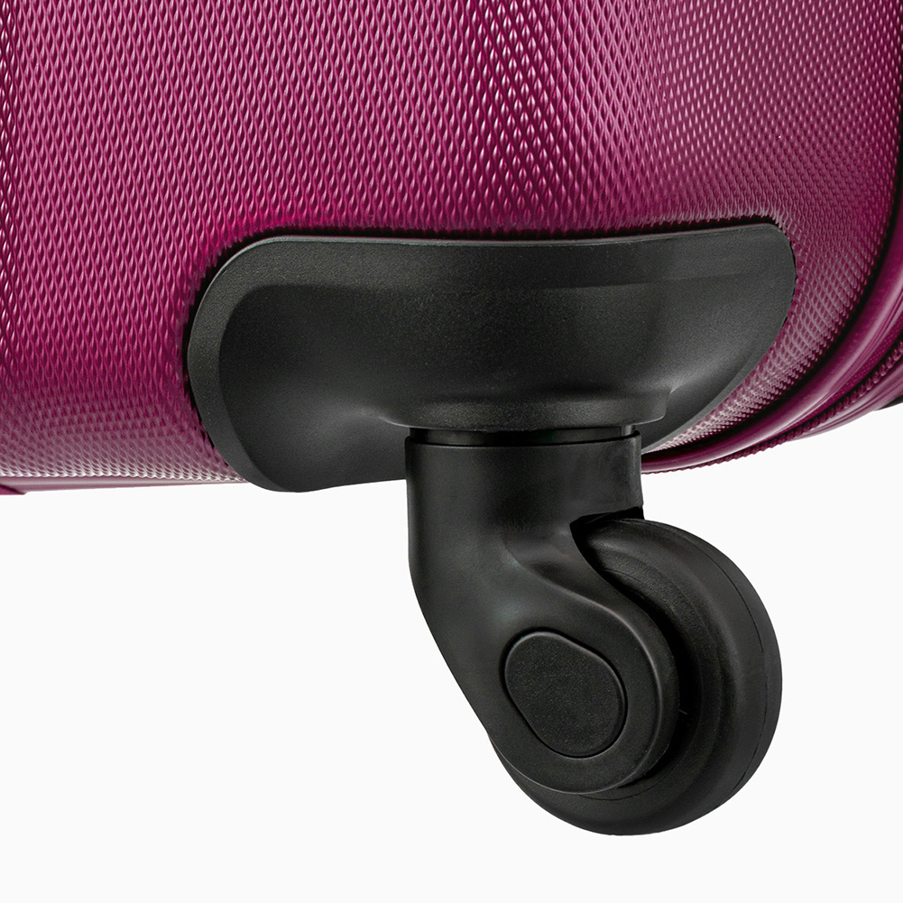 - 4 koła (spinner 360) (koła wykonane z gumy i PVC co dodatkowo wzmacnia je przed uderzeniami zewnętrznymi, oś na której zamocowane zostało koło wzmocniona pyłem diamentowym),