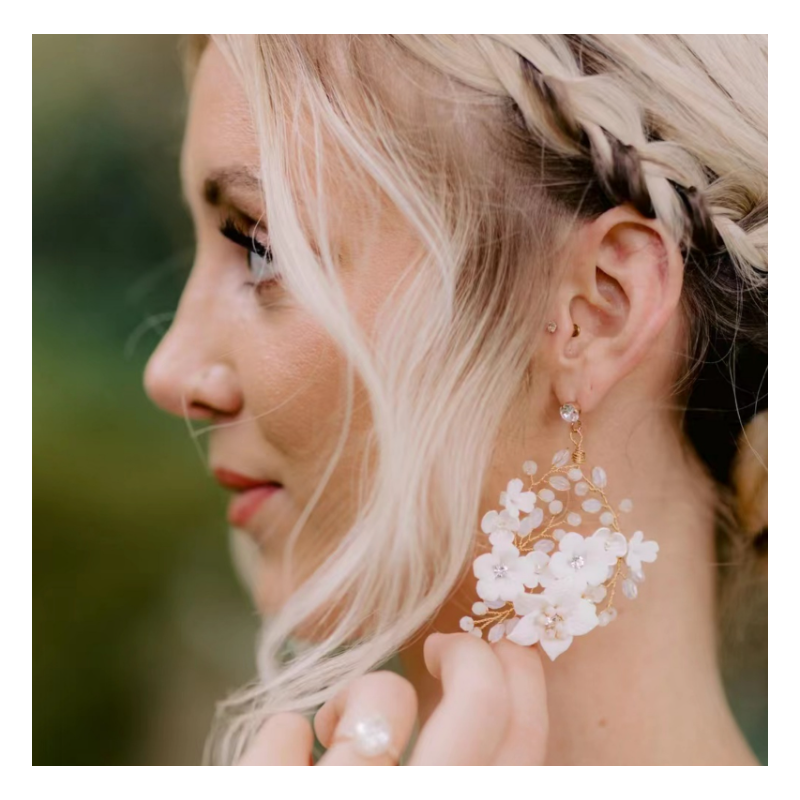 Kolekcja biżuterii ślubnej Nowe, modne wzory wykonywane ręcznie ze stopów jubilerskich Starannie dobrane materiały sprawiają, że biżuteria nie zmienia koloru i jest hipoalergiczna, a także jest wytrzymała dzięki odpowiedniej twardości stopów Zadbaliśmy również o to aby do jej wykonania użyte zostały selekcjonowane cyrkonie dzięki czemu biżuteria ta charakteryzuje się niezwykłym blaskiem Wszystkie modele będą na pewno pięknym dodatkiem do sukien ślubnych Państwa klientów   Wymiary: 6 cm x 7 cm długie