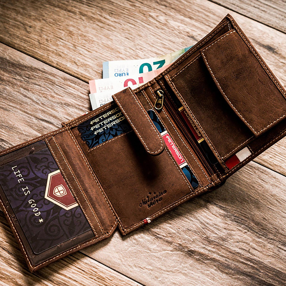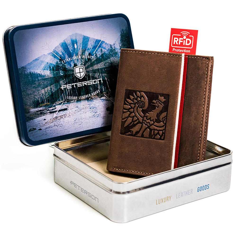 Skórzany portfel męski z akcentem patriotycznym — Peterson