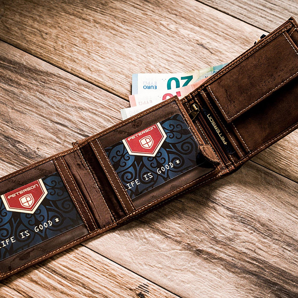 Nubukowy portfel męski z ochroną kart RFID — Peterson