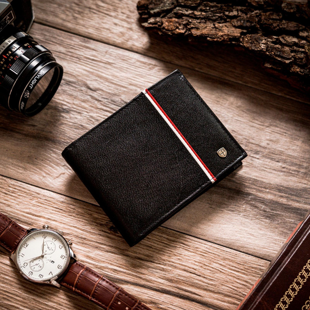 - Patriotyczny dodatek | Portfel o klasycznej stylistyce. Model w orientacji poziomej bez zapięcia zewnętrznego. Na froncie mieści się subtelny motyw biało-czerwonej flagi.