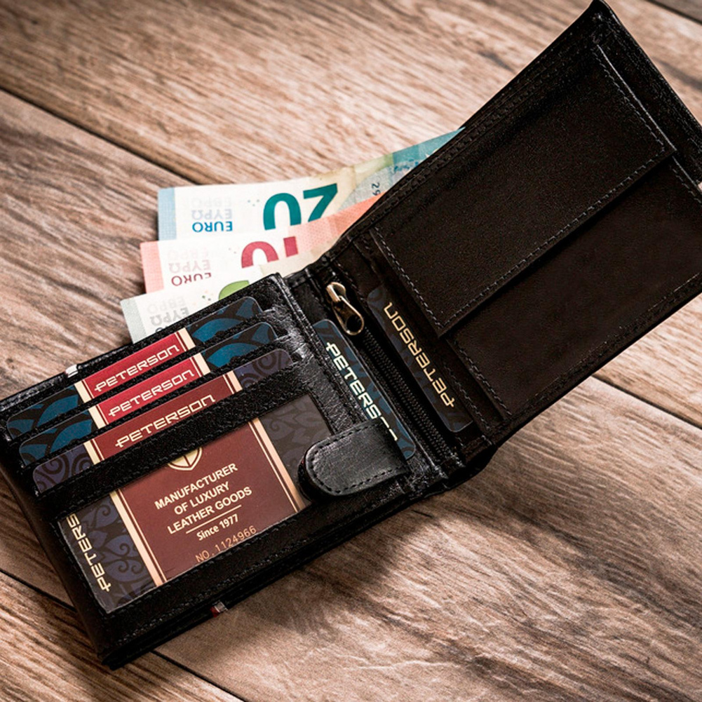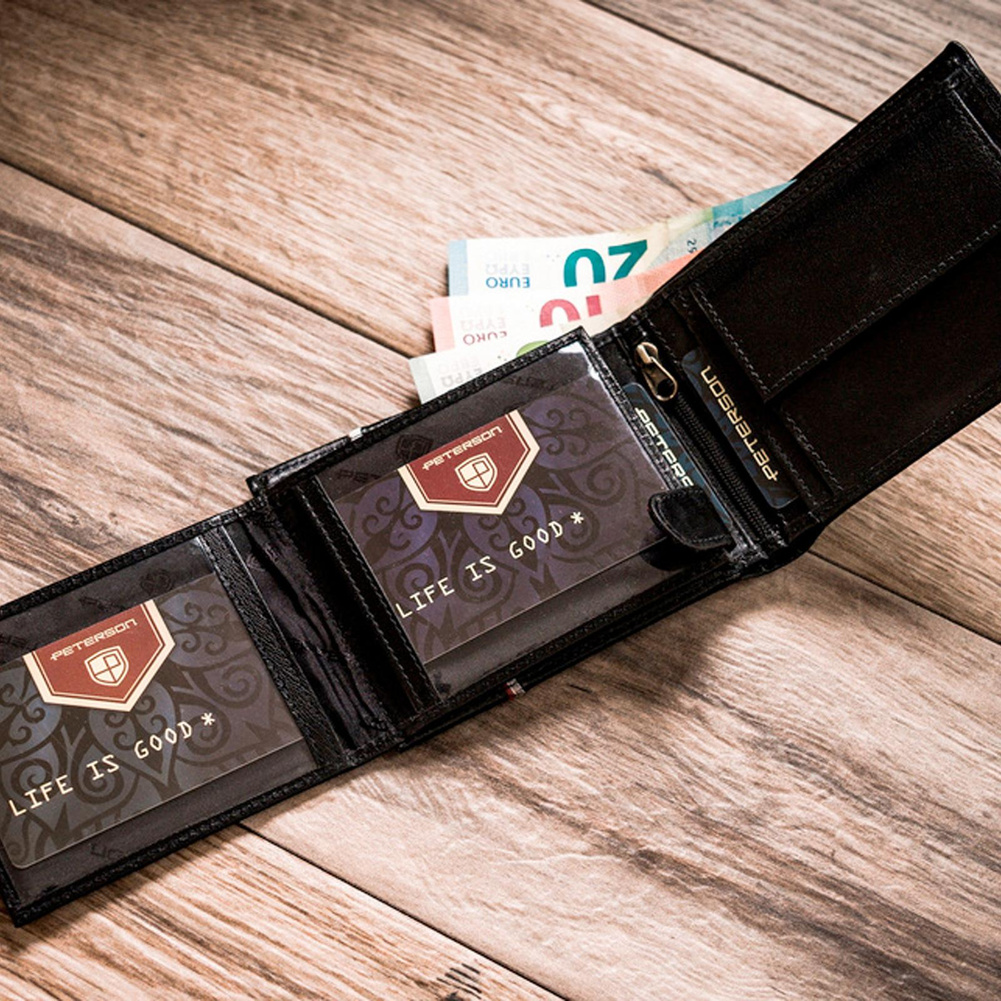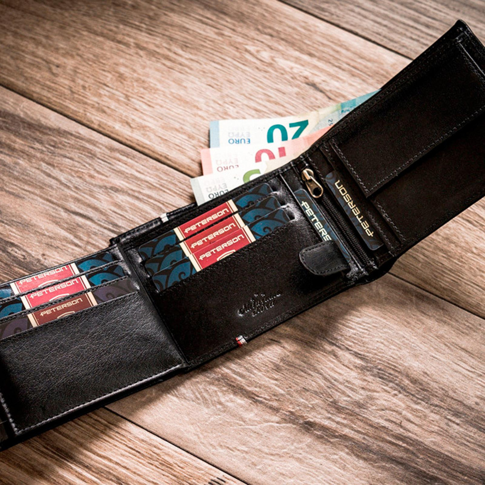 - banknoty schowasz do 2 otwartych, szerokich przegródek, wykończonych materiałową podszewką.