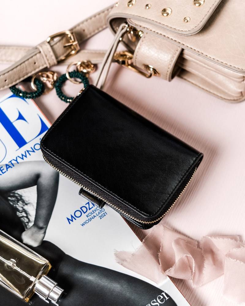 - Klasyczna czerń zawsze w modzie | Portfel o klasycznej stylistyce w zmysłowym, czerwonym kolorze. Model w orientacji pionowej, zapinany trwałym zatrzaskiem
