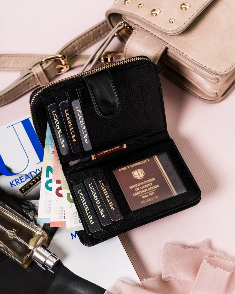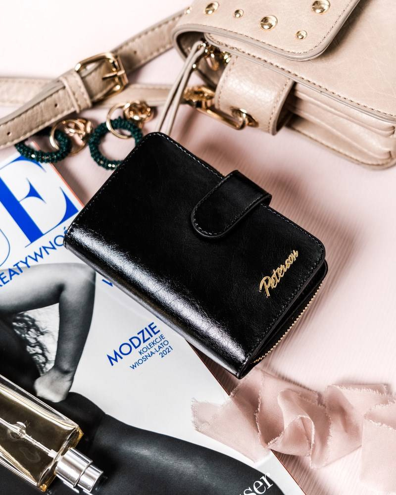 Skórzany portfel damski na zatrzask Peterson Czarny