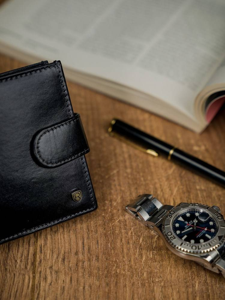 Klasyczny skórzany portfel męski z zapięciem RFID - Rovicky