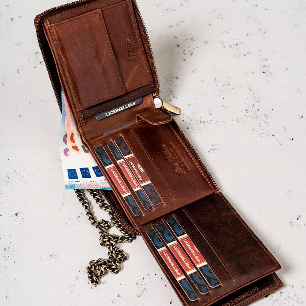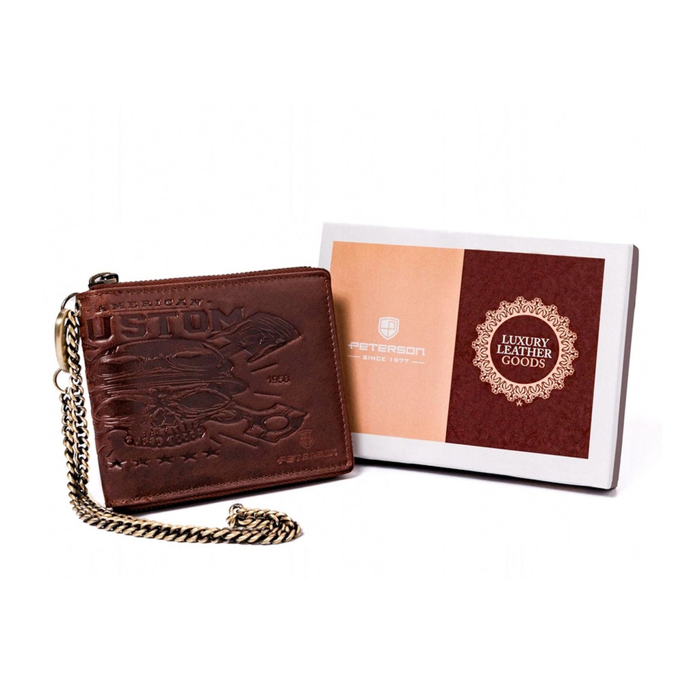 Duży, skórzany portfel męski z łańcuchem — Peterson