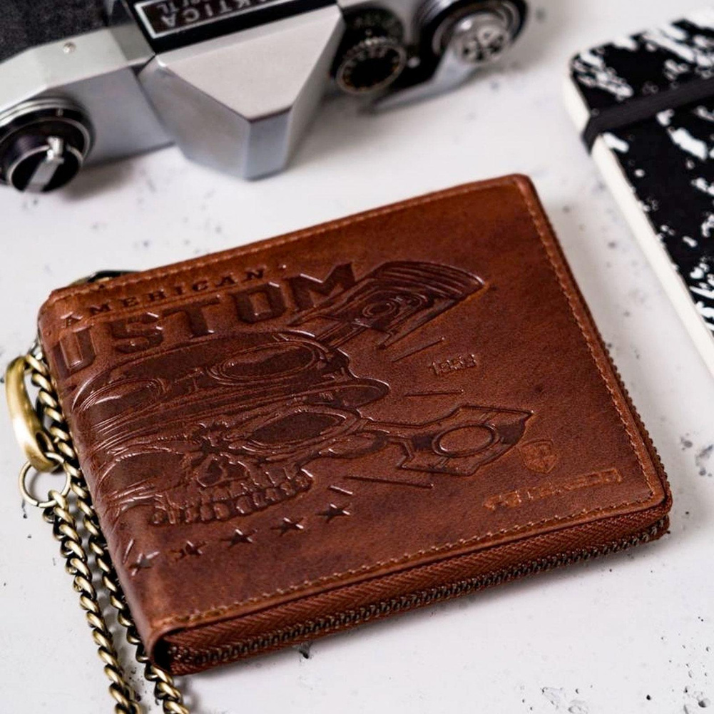 • Długi łańcuch | Portfel zawieszony jest na długim i solidnym łańcuszku, dzięki któremu go nie zgubisz! Przydatne przede wszystkim podczas jazdy motocyklem!