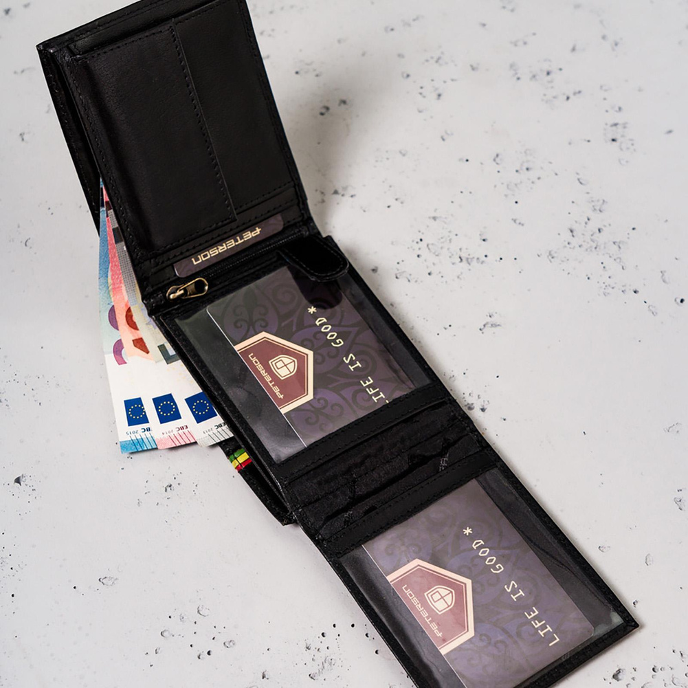 - banknoty schowasz do 2 otwartych, szerokich przegródek, wykończonych materiałową podszewką.